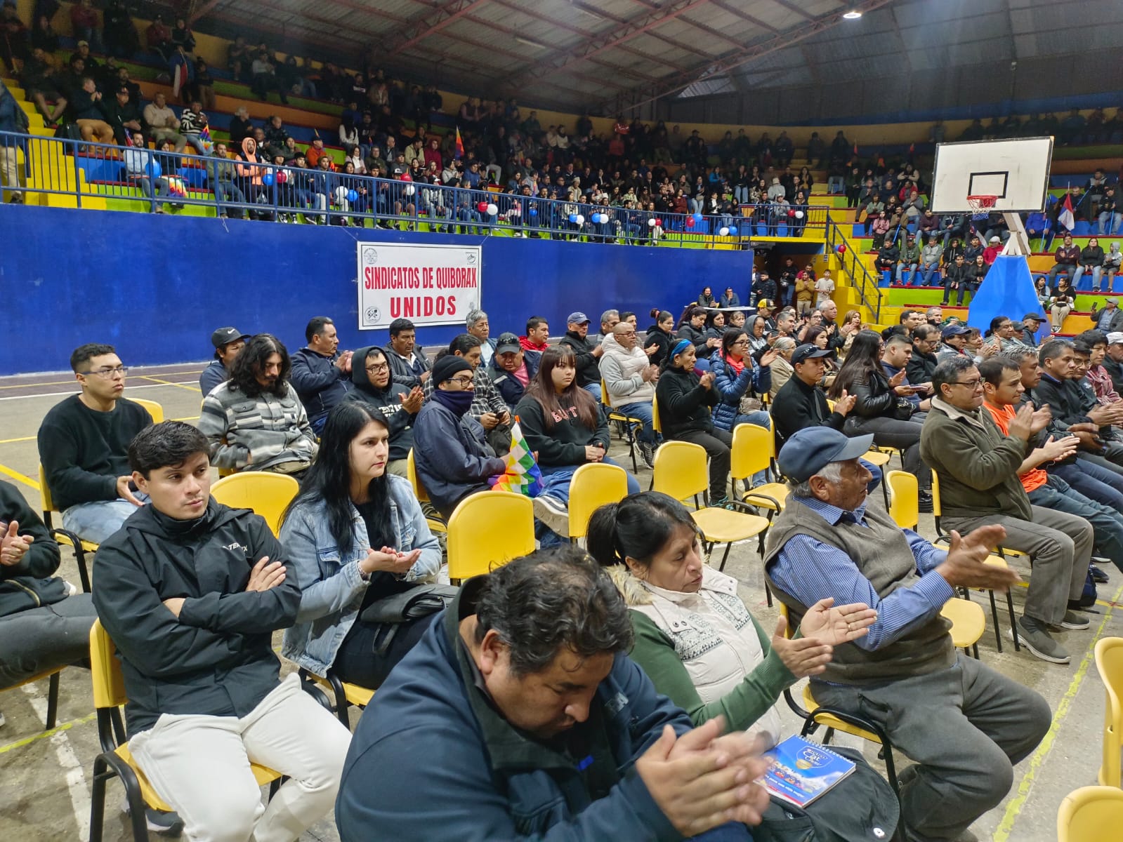 En el gimnasio Epicentro 2 de la Villa Pedro Lagos, más de 500 trabajadores de los sindicatos de la minera Quiborax, junto a transportistas, pymes,