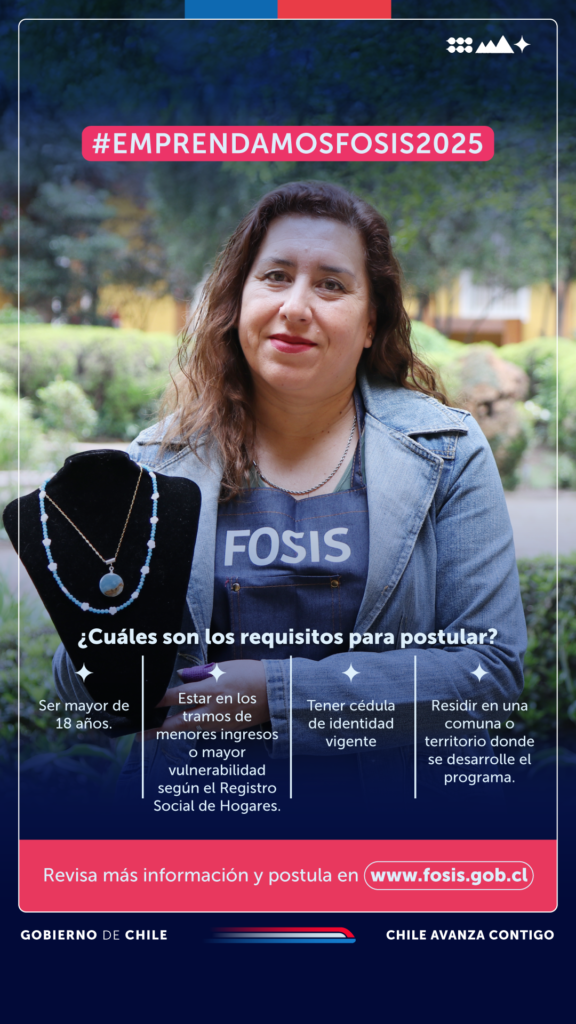 Los postulantes tendrán plazo hasta el 12 de mayo para inscribirse en los programas del FOSIS a través de www.miportalemprendimiento.gob.cl. Los requisitos básicos para participar son ser mayor de 18 años, contar con cédula de identidad vigente, tener Clave Única y pertenecer a los tramos de menores ingresos según el Registro Social de Hogares (RSH).