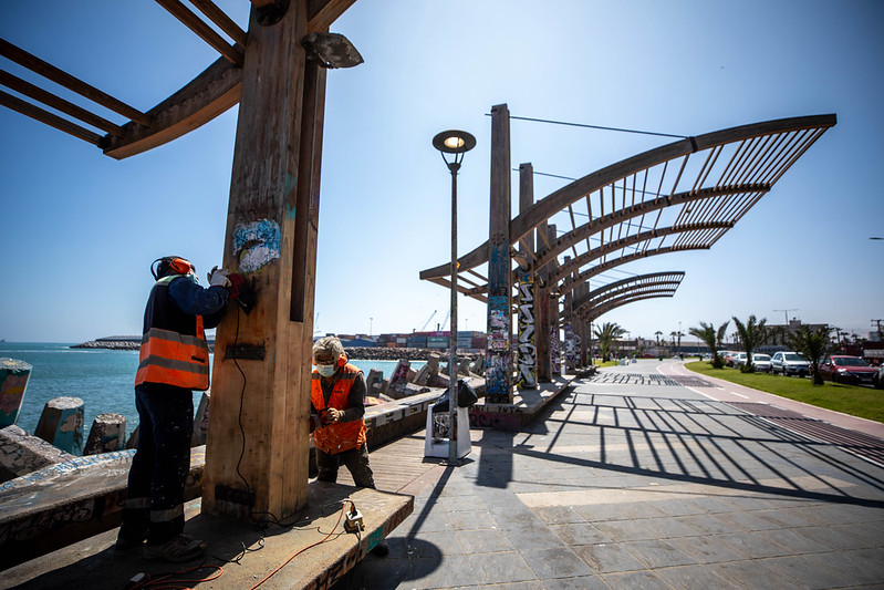 Los trabajadores de Aseo y Ornato están llevando a cabo un intenso trabajo de pulido, pintura y reparación de los sombreaderos ubicados en el camino